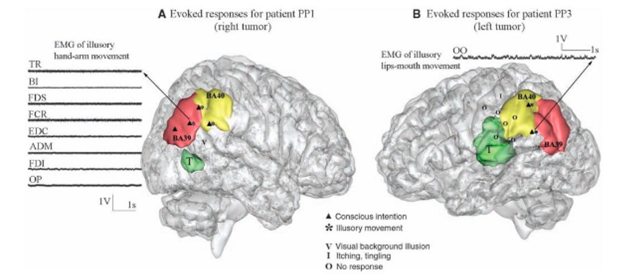 刺激によって実際の運動が誘発されたが、被験者は「自分が動こうとした」という意識を持たないことがあった