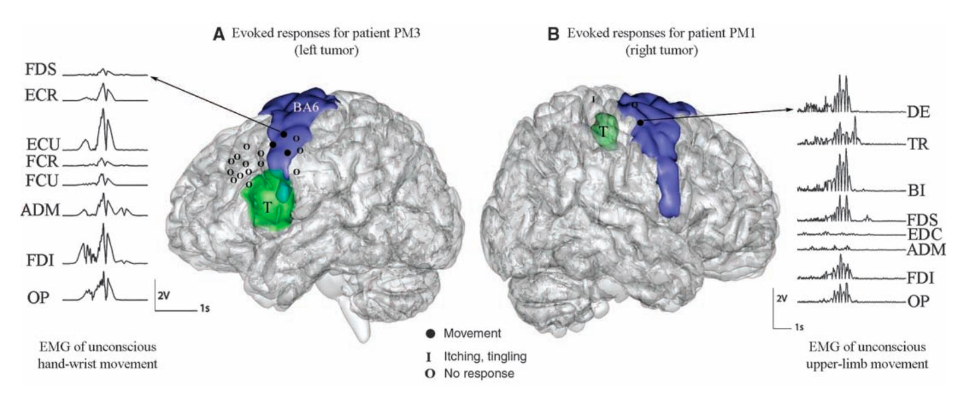 低強度の刺激を与えると、被験者は「動こうとしている」と報告するが、実際には運動を伴わない