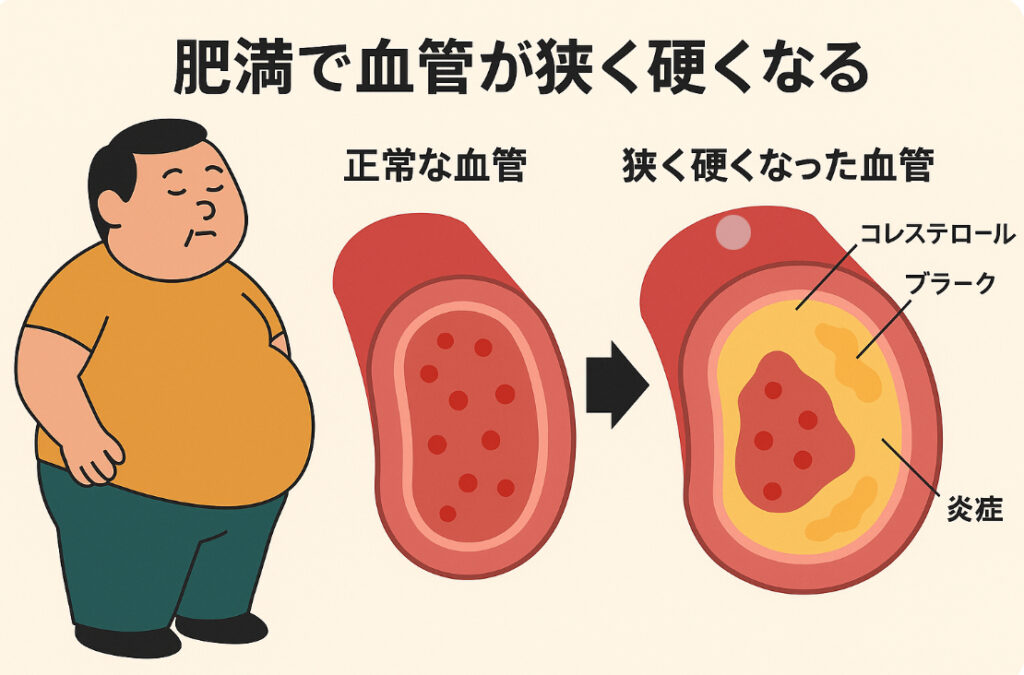肥満による炎症性サイトカイン(TNF-α、IL-6など)が血管の内皮細胞を傷つける