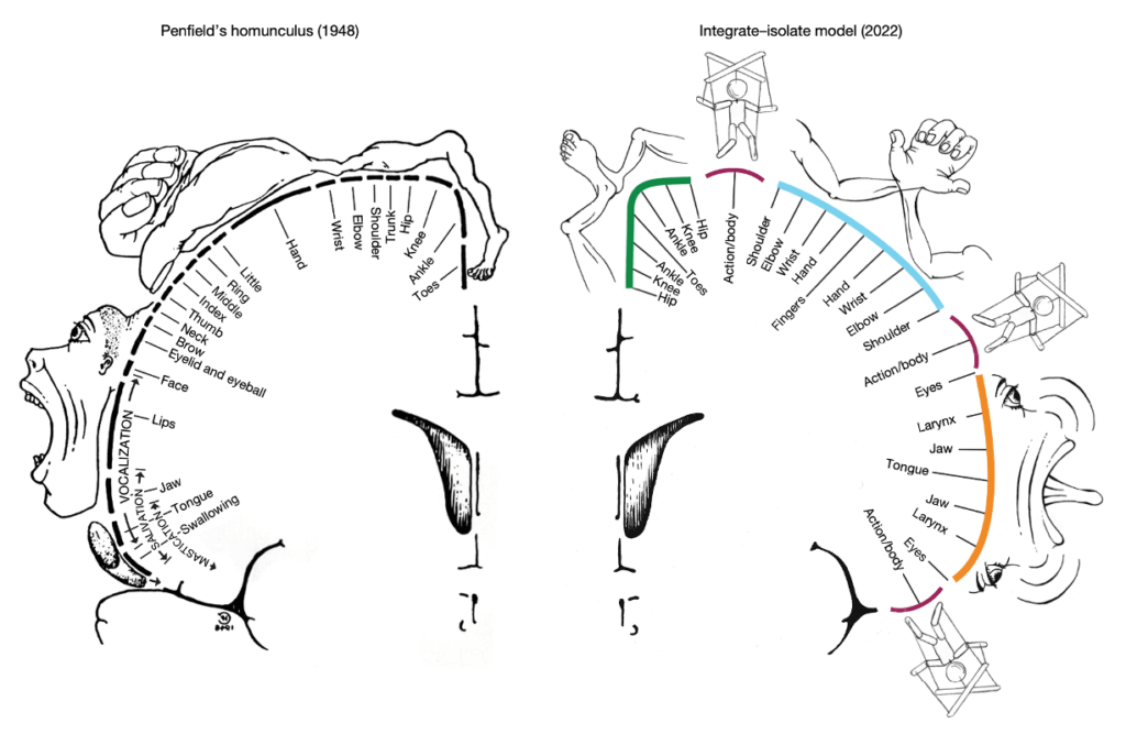 これまでの神経科学研究では、一次運動皮質(M1)は身体の各部位の動作を直接的に制御する領域であり、身体の「地図(somatotopy)」が並んで存在していると理解されてきました