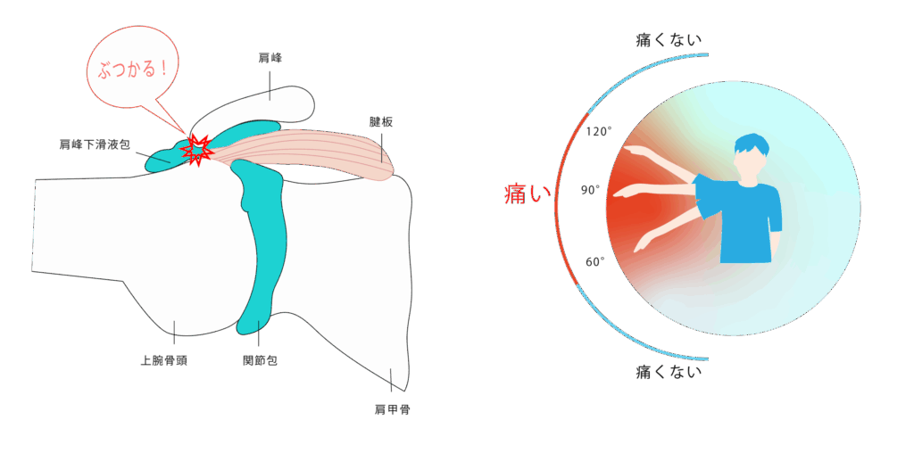 このジスキネジアの結果、上腕骨の運動に対して肩峰のクリアランスが不十分となり、上腕骨大結節が肩峰下に衝突しやすくなります。これが、腱板(特に棘上筋)や肩峰下滑液包といった軟部組織への機械的圧迫、すなわち一次的な肩峰下インピンジメントを引き起こす直接的なメカニズムとなるのです (福島秀晃, 三浦雄一郎, 2013)。