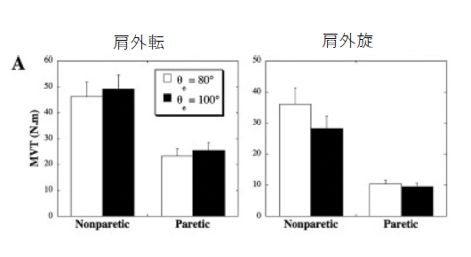 この重力の影響は、肩の外転筋や外旋筋の筋力低下とは関連していなかった。また、肘関節の屈筋と伸筋の筋力バランスの異常とも関連しなかった