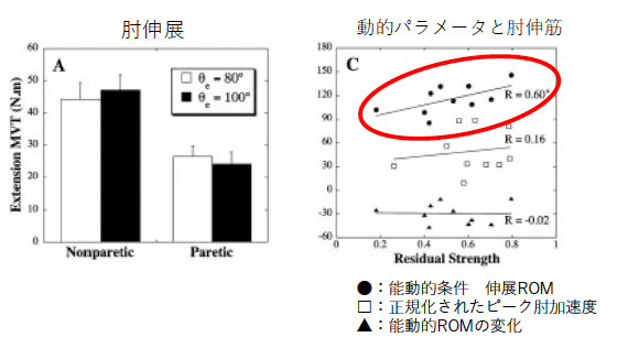 肘関節伸展の筋力と能動的支持時の可動域には弱い相関があった