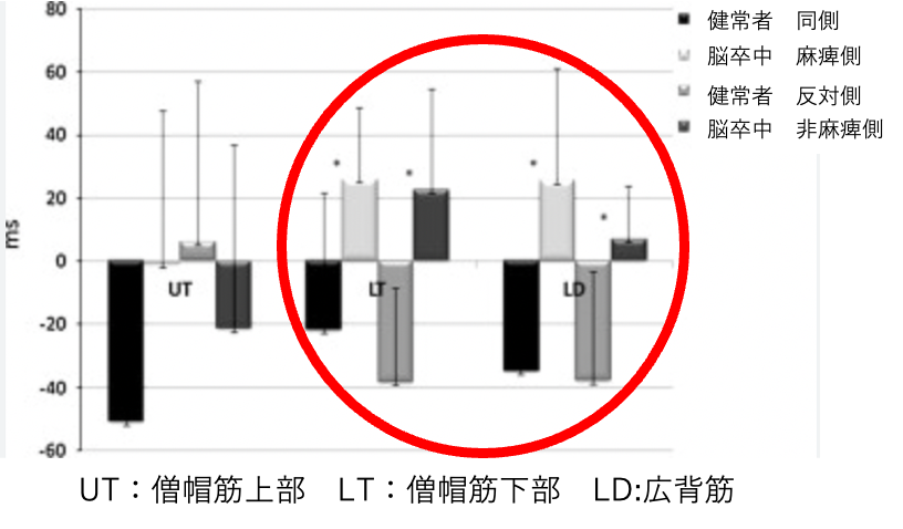 ・脳卒中患者は健常者と比較し、両側のAPAsに遅延が見られた