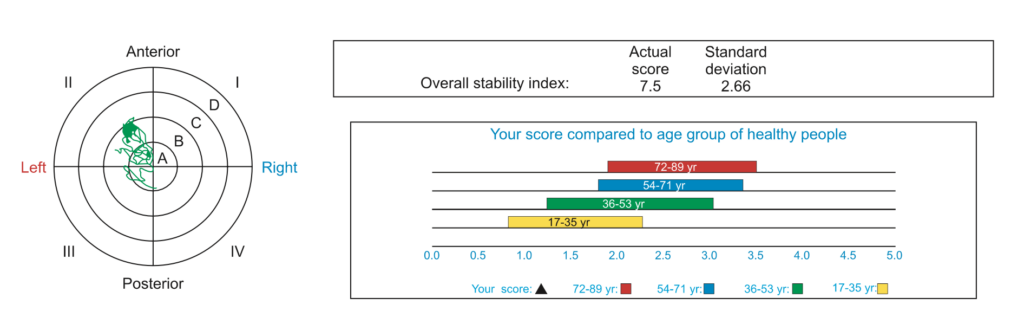 左右方向の姿勢動揺・総合安定性指標・転倒リスクスコア