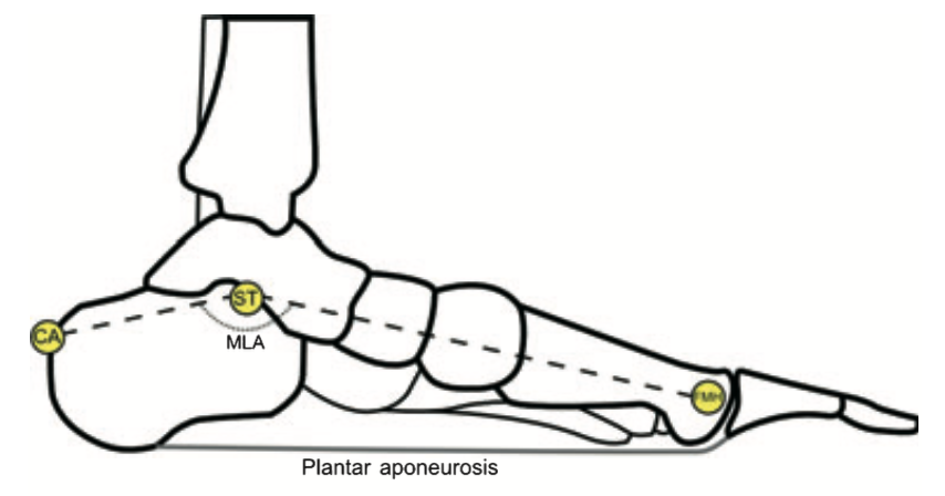 ・足の内側縦アーチ(MLA)を支える最も重要な受動的構造物にの1つ