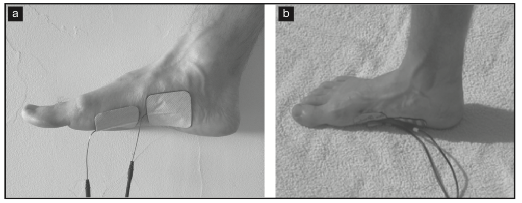 NMESを利用した内在筋トレーニングでは、特に内側縦アーチや母趾外転筋(AH)への刺激が効果的であることが研究で示されています。短時間のNMESセッションでも足圧分布が改善し、バランス制御能力が向上する結果が得られています。