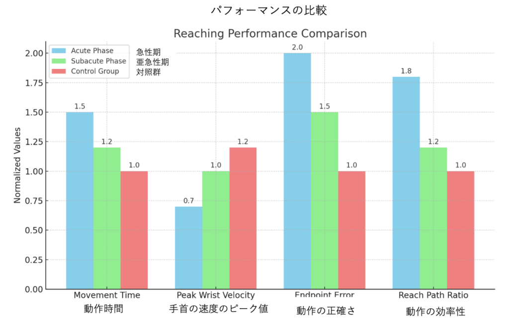 - 患者のリーチング動作は全体的に低いパフォーマンス