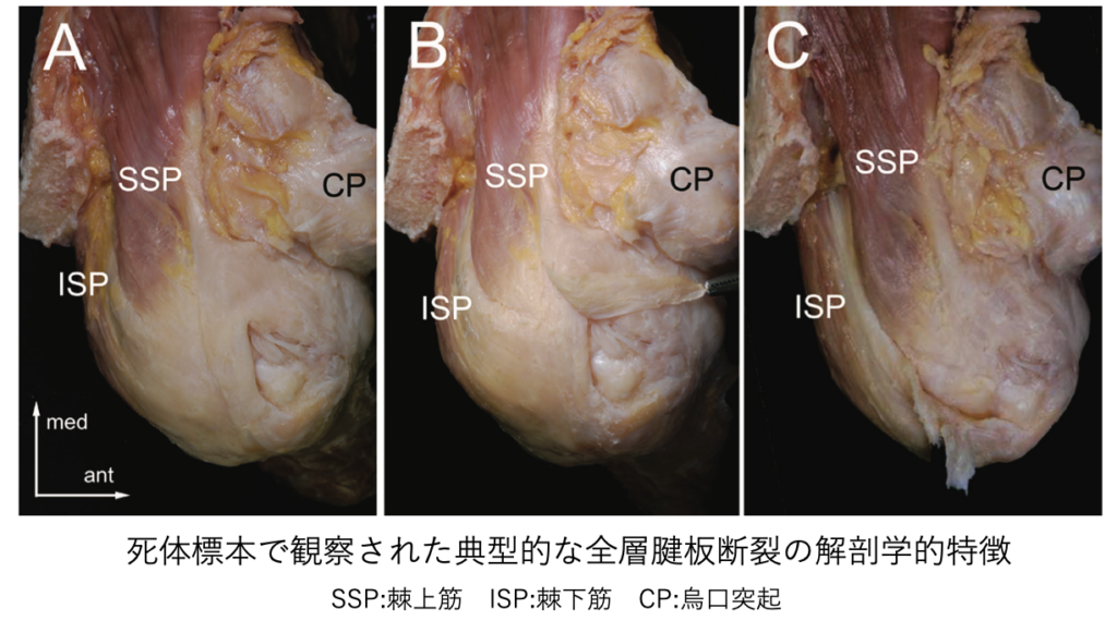 これにより、従来「棘上筋腱損傷」と診断されていた症例の多くに、棘下筋腱の損傷も含まれている可能性が高い