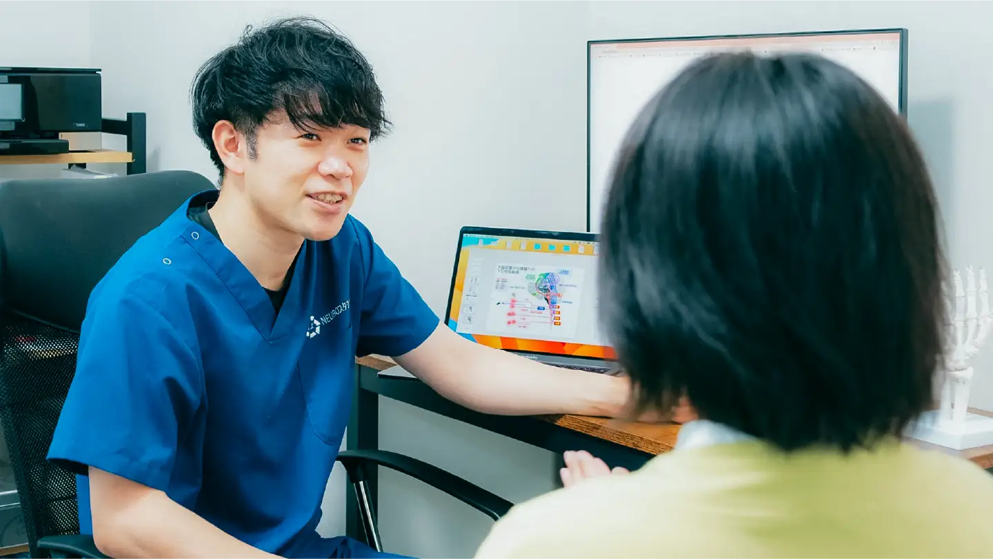 リハビリ内容に疑問や不安があると取り組む姿勢が弱まってしまいます。そうならないためにも「なぜ、そのリハビリが必要なのか」「どういったメリット、デメリットがあるのか」「あなたの意向は何か」といった点について話し合う時間を頂戴し、納得していただいた上でリハビリさせていただきます。